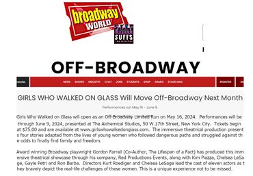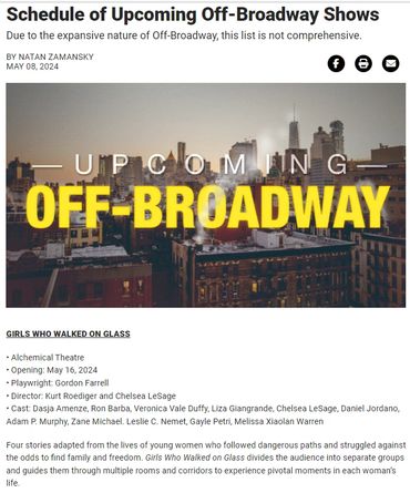 Since our first workshop laboratory on the Lower East Side in New York, we have moved up to regional, Off-Broadway and Broadway productions. The press has taken notice!
